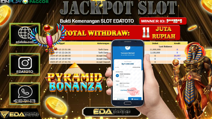 Selamat Kepada Pemilik user ID : P**Ko*5 Hari/Tanggal : Kamis/ 17, Juli 2025 Jackpot : Rp. 11.000.000 JT Permainan : Pyramid . . .