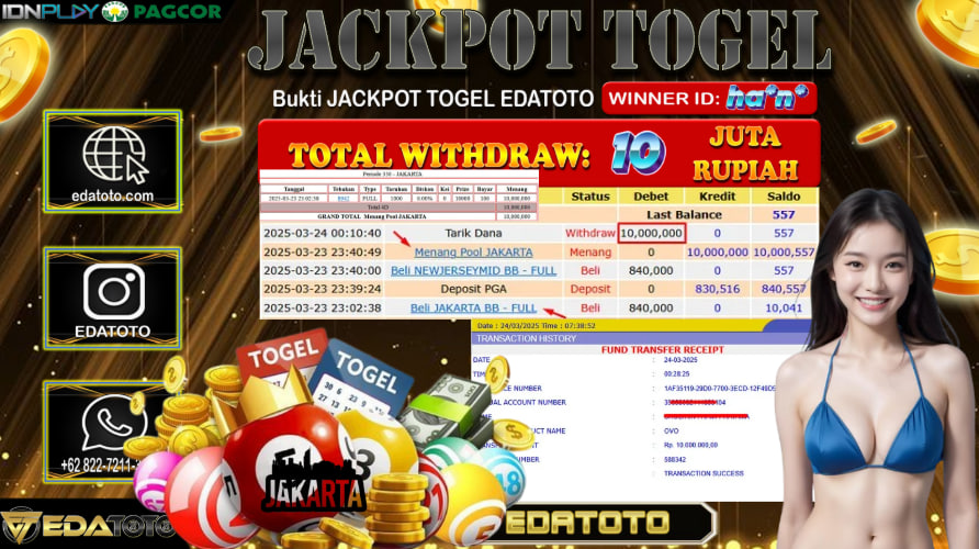 Selamat Kepada Pemilik user ID : ha*n* Hari/Tanggal : Sabtu / 18 , MARET 2025 Jackpot : Rp. 10.000.000 JT . . .