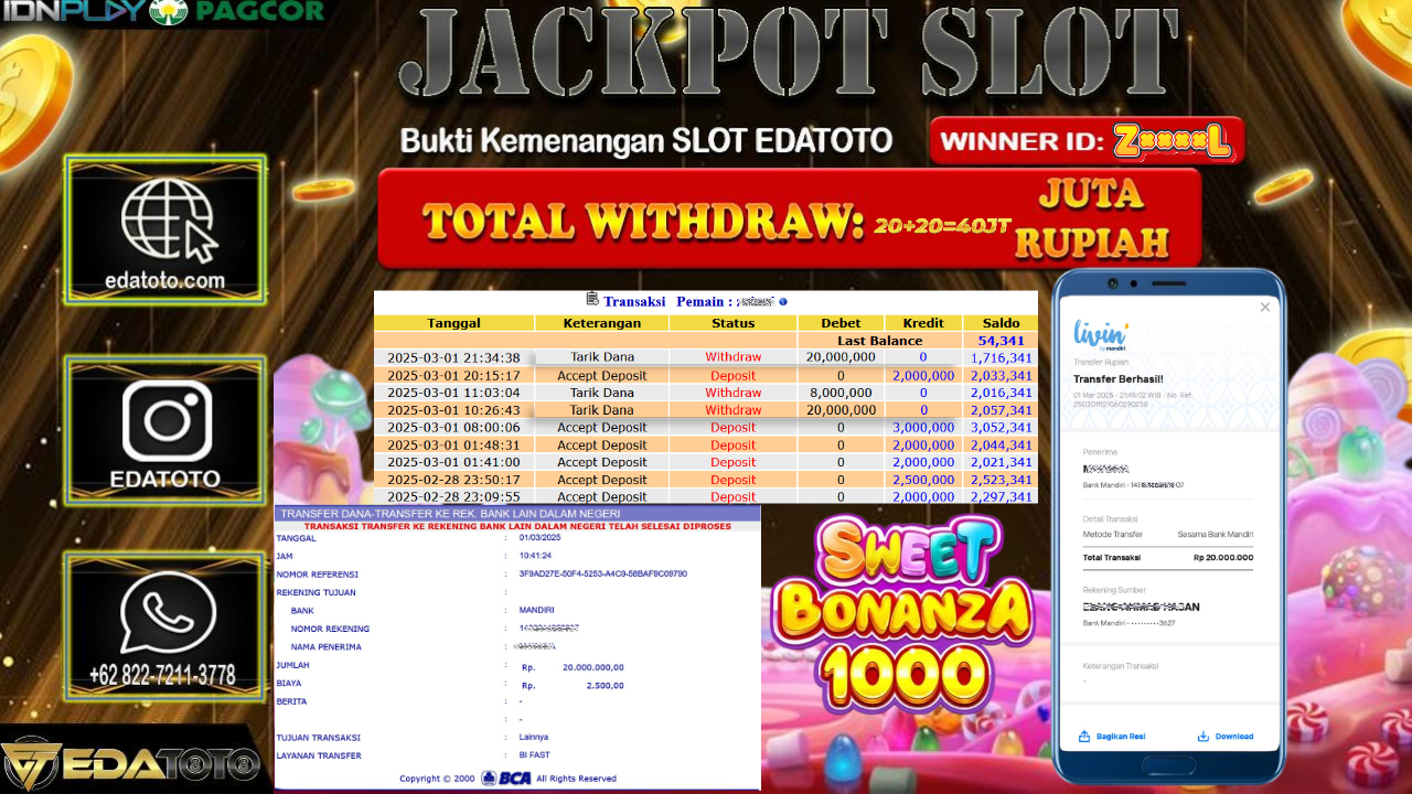 Selamat Kepada Pemilik user ID : Z****L Hari/Tanggal : Sabtu / 01 , MARET 2025 Jackpot : Rp. 40.000.000 JT Permainan . . .