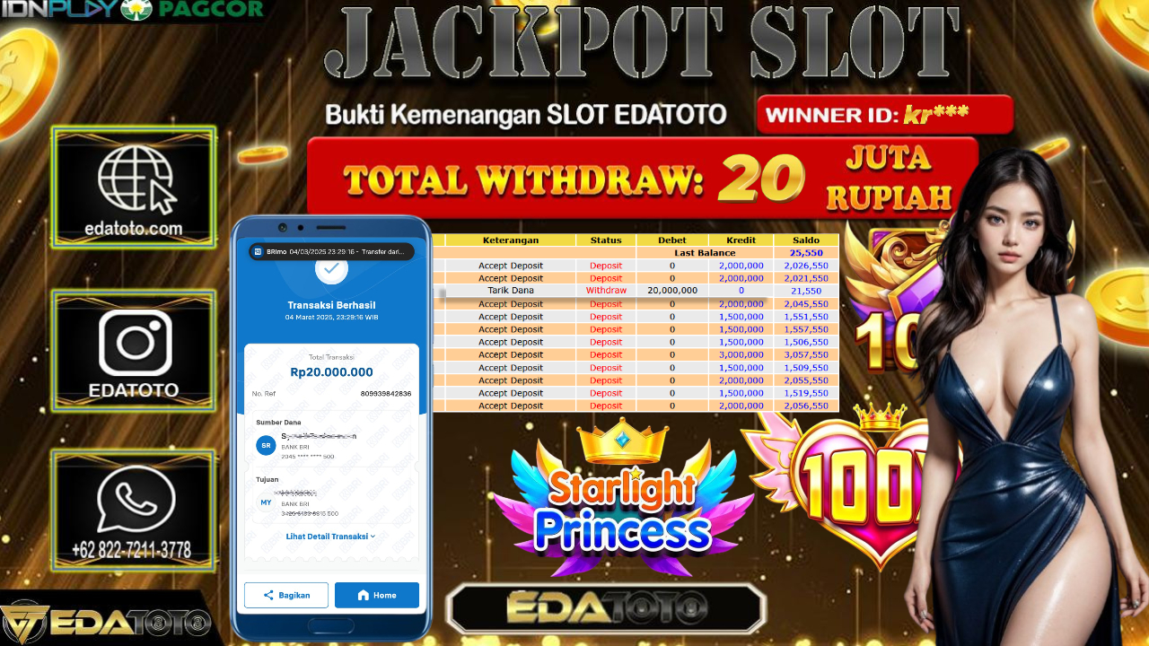Selamat Kepada Pemilik user ID : kr*** Hari/Tanggal : Selasa / 04 , MARET 2025 Jackpot : Rp. 20.000.000 JT Permainan . . .