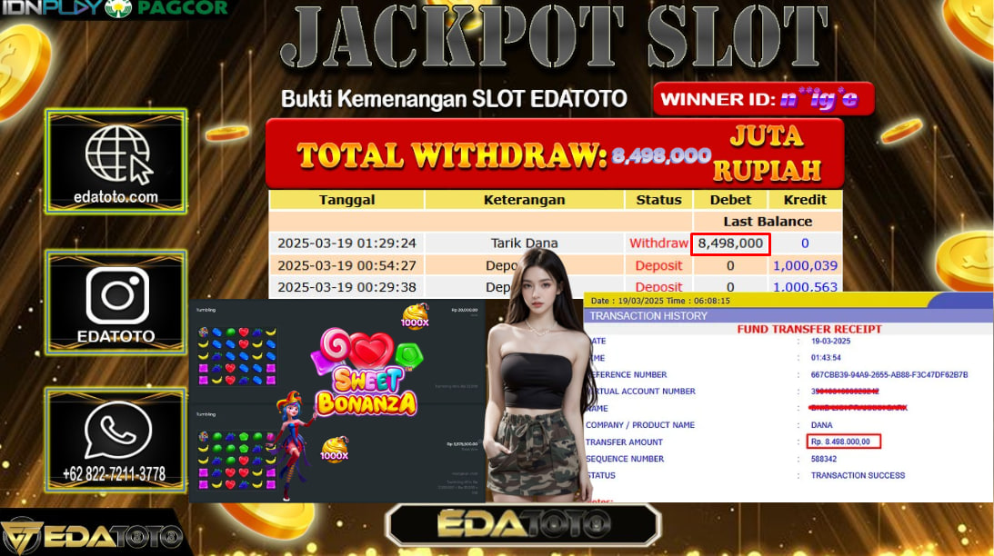 Selamat Kepada Pemilik user ID : n**ig*e Hari/Tanggal : Sabtu / 18 , MARET 2025 Jackpot : Rp. 8.498.000 JT . . .