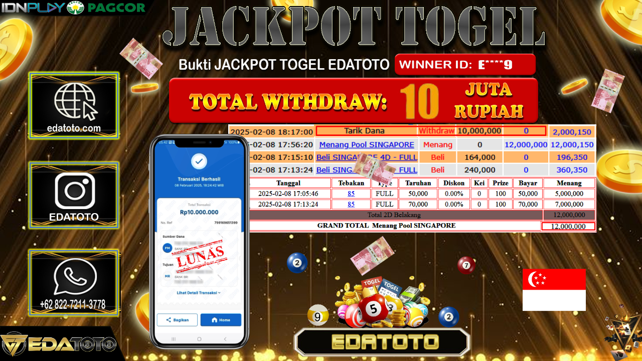Selamat Kepada Pemilik user ID : TO****7 Hari/Tanggal : Senin / 10 , FEBRUARY 2025 Jackpot : Rp. 70.000.000 JT . . .