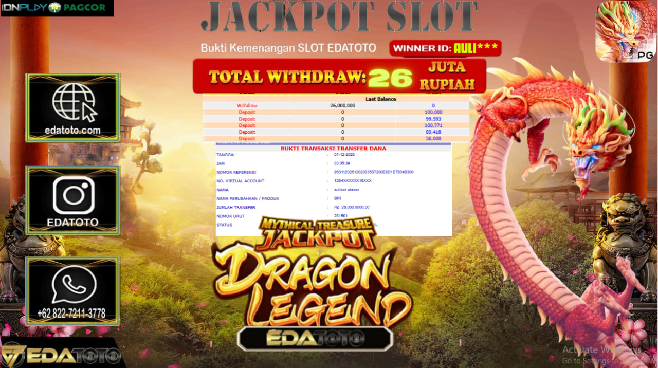 Selamat Kepada Pemilik user ID : SRI*** Hari/Tanggal :KAMIS / 3, DESEMBER 2025 Jackpot : Rp. 88,805,000 JT Withdraw :85,000,000 . . .