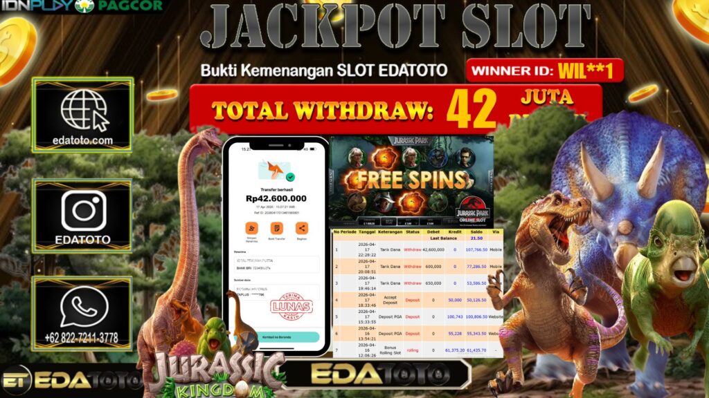 Selamat kepada member setia EDATOTO telah mendapatkan JP Bermain Di : JURASSIC KINGDOM